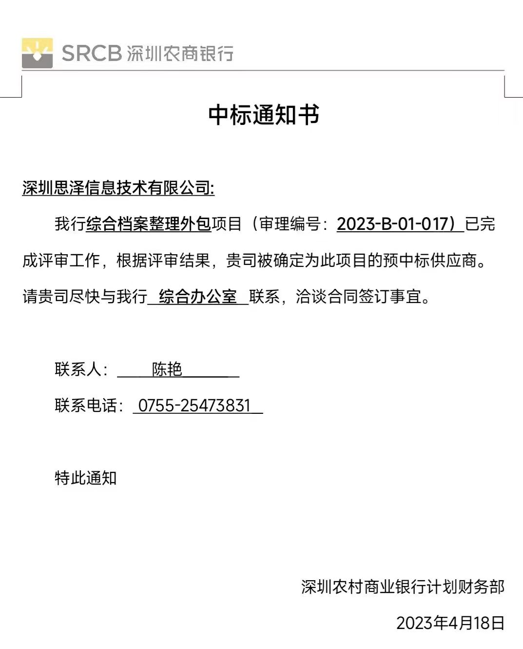深圳农村商业银行股份有限公司14个支行(龙岗、龙华、龙城、坂田、盐田、福永等)此次档案整理验收内容包括:其它档案(文书档案、基建档案、内审档案、纪检档案、大宗采购档案、信息技术档案、会计报表、会计账薄、会计其它等)、实物档案、证照档案、声像档案、合同档案、收单业务档案、运营业务档案、重要综合档案电子化。